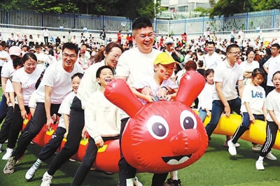 青島市西海岸新區(qū)太行山路小學(xué)開展親子運動會。學(xué)校供圖