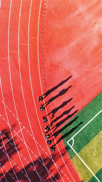 德州學(xué)院學(xué)生拍攝創(chuàng)意畢業(yè)照,俯影成畫,綠茵場上憶韶華。曲政承 攝