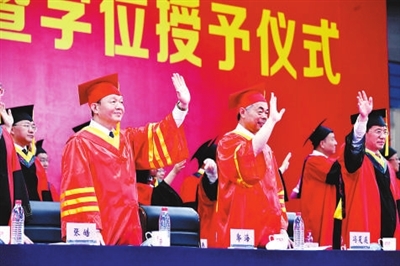 東北大學(xué)畢業(yè)典禮結(jié)束后,全體教師起立,目送畢業(yè)生出發(fā)。 黃麗紅 攝