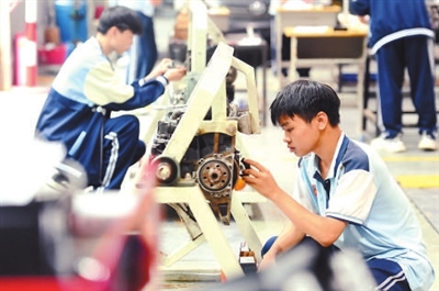 圖② 湖南永州工貿(mào)學(xué)校學(xué)生在參加汽車維修工等級認定實操考核。蔣克青 吳宴林 攝