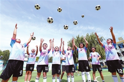 圖④ 河北省唐山市豐潤區(qū)西實驗小學(xué)女足隊員進行訓(xùn)練。朱大勇 攝