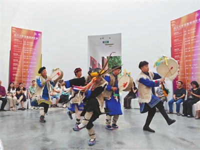 在四川大學2023傳統(tǒng)舞蹈(甲搓)非遺傳承人研培班上,川大師生與非遺傳承人學員共同編排了一套舞蹈,至今仍在瀘沽湖畔展演?!皩W員們的熱情感染了我們,讓我們在創(chuàng)作的過程中進一步感受到非遺的魅力,也讓我們更加真切地體會到美育的效果。”參與舞蹈編排的碩士研究生韓雨琦說。