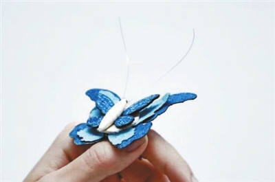 云南藝術學院設計制作的“藍蝶”胸針。 云南藝術學院供圖
