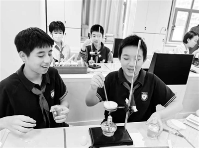 上海市黃浦區(qū)教育學院附屬中山學校學生在進行科學實驗。韓志琦 攝