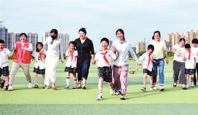 8月7日,安徽省合肥市廬陽區(qū)大楊鎮(zhèn)王墩社區(qū)黨委聯(lián)合合肥市躍進小學(xué)開展“親子運動 喜迎全民健身日”活動,該校二(2)中隊向陽小隊的學(xué)生和家長參加,共同迎接全民健身日的到來。