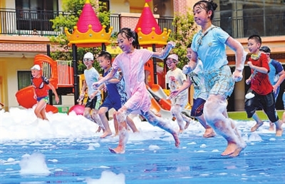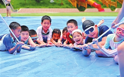 8月7日,孩子們在進(jìn)行游戲。