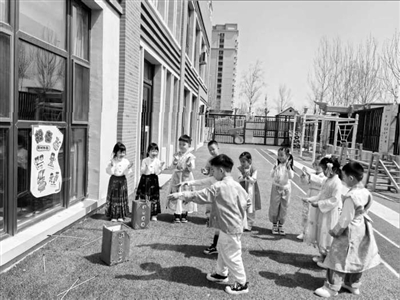 ①吉林省長(zhǎng)春市南關(guān)區(qū)第七幼兒園的孩子們?cè)趹敉狻巴秹亍薄?