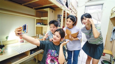 新生在宿舍開(kāi)心拍照合影。劉羽恒 攝