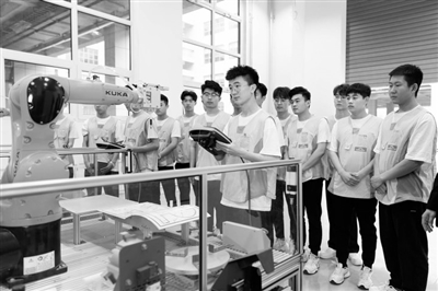 山東理工職業(yè)學(xué)院學(xué)生在進(jìn)行工業(yè)機(jī)器人技能訓(xùn)練。本文圖片均由學(xué)校供圖