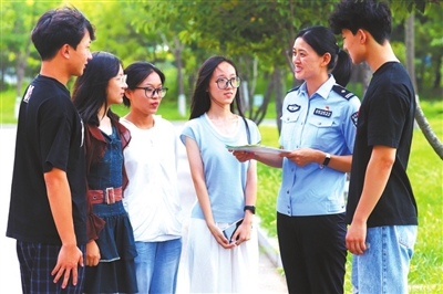 近日,在山東省高密市,2025級大學(xué)新生在聽當(dāng)?shù)毓簿址丛p中心民警講解反詐知識。李海濤 攝